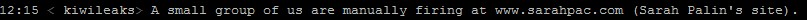 A small group of Anonymous protesters (not everyone) have started attacking Sarah Palin’s website (sarahpac.com) in retaliation for stating that Assange should be hunted like a terrorist. We have observed 6 minutes of downtime so far.