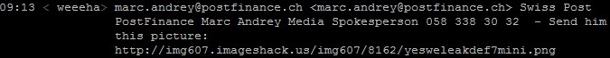 In addition to the DDoS attack, some Anonymous members are spamming PostFinance offices with the following image.